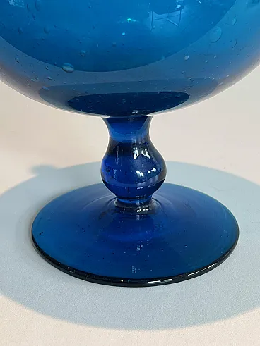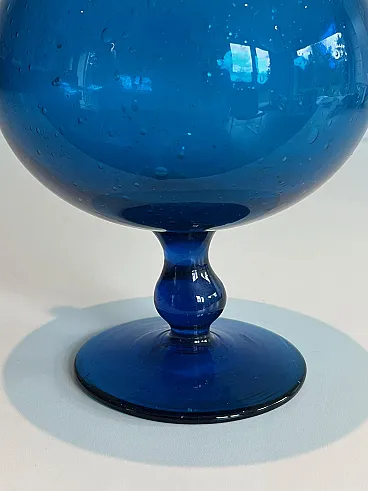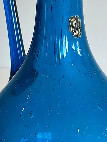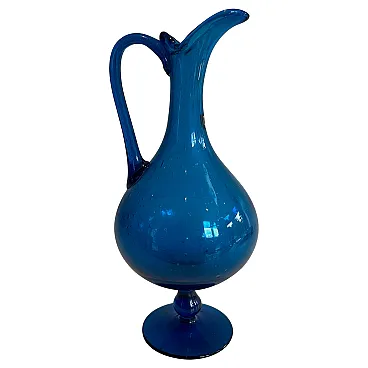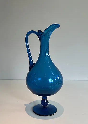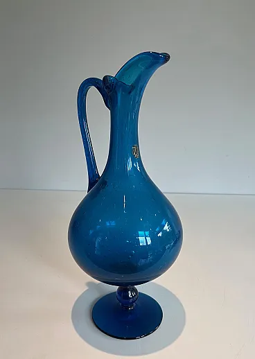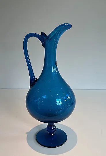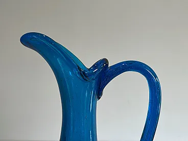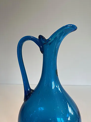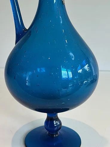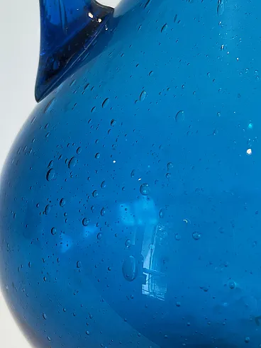 Brocca in vetro bluastro firmata Stilnovo, anni '70