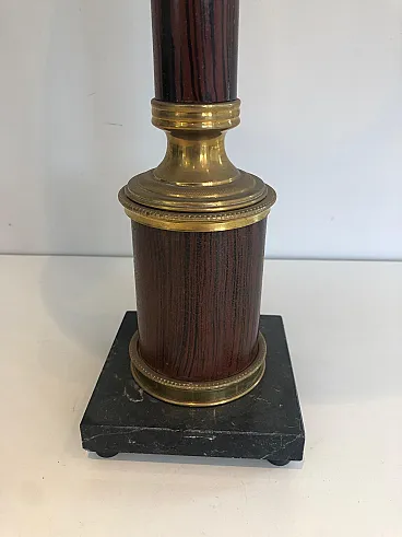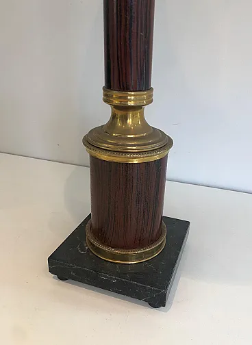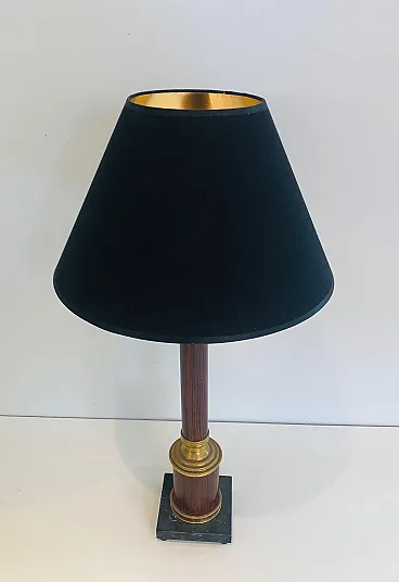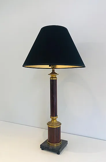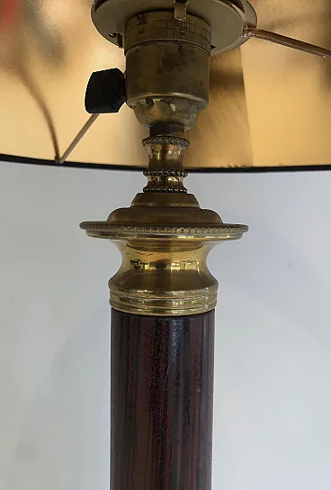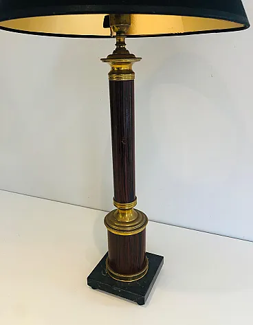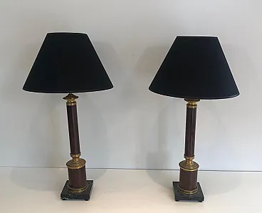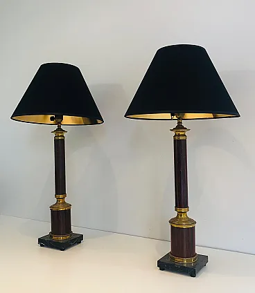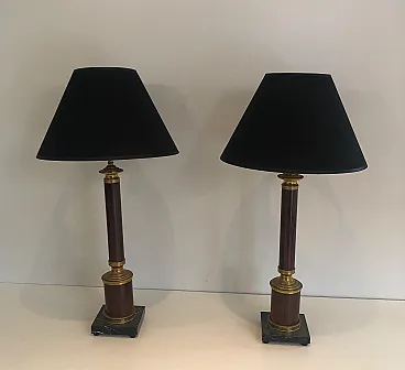 Coppia di lampade da tavolo in metallo finto-bois e ottone, anni '40
