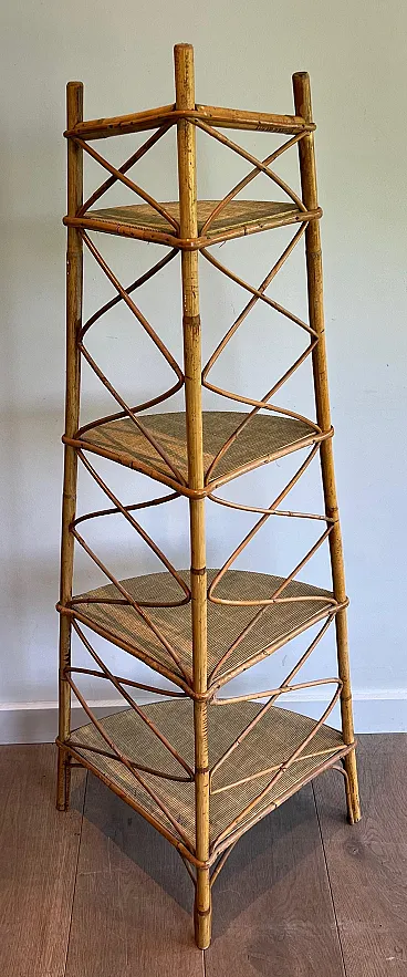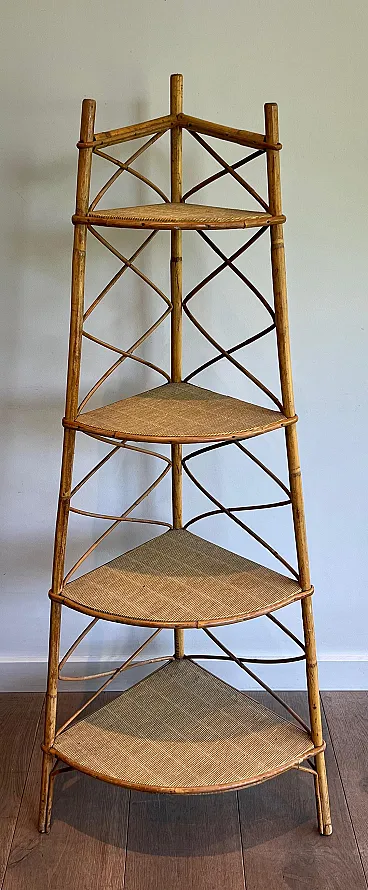 Scaffali angolari in rattan di Adrien Audoux e Frida Minet, anni '50
