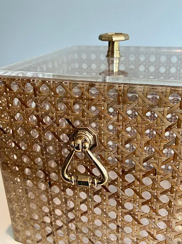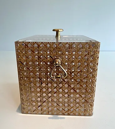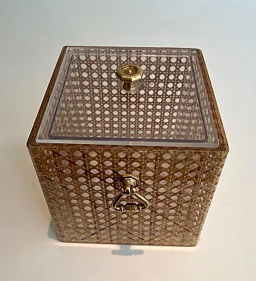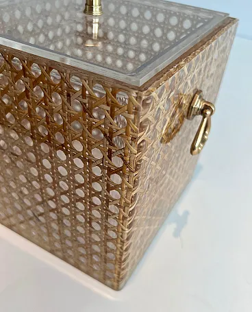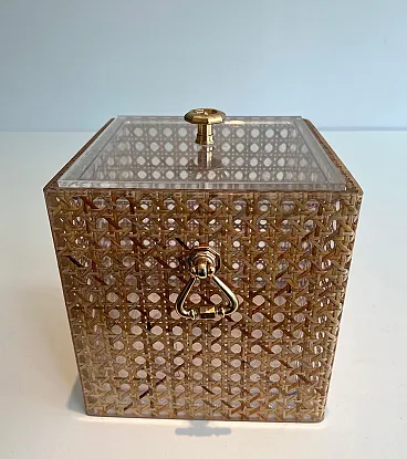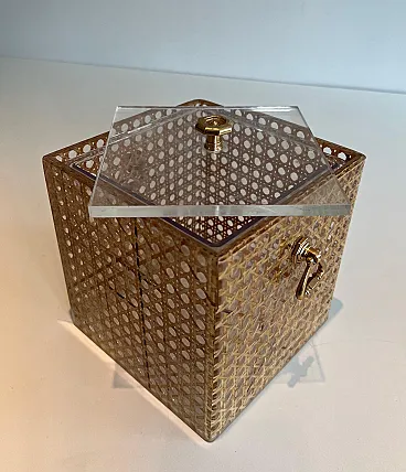 Secchiello per il ghiaccio in lucite, canne e ottone, anni '70