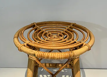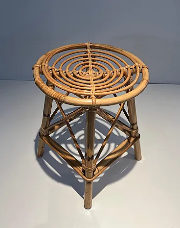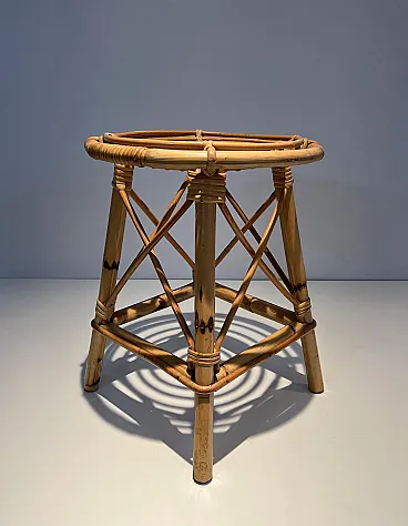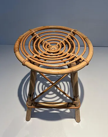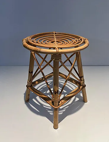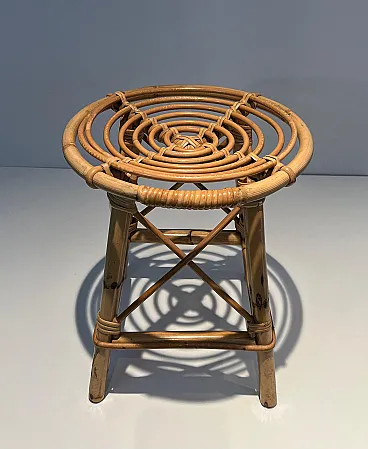 Questo sgabello molto bello e decorativo è realizzato in rattan e bambù. Questa è un'opera francese. Circa 1970