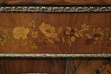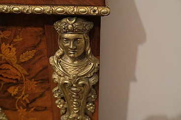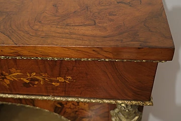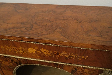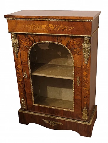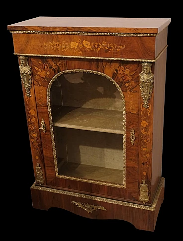 Vetrina Vittoriana Inglese in radica di noce finemente intarsiata con applicazioni in bronzo dorato. Inghilterra (1850/60). Certificato di Autenticità.