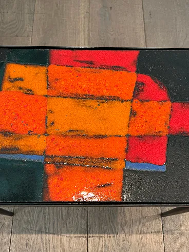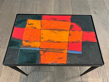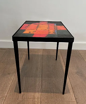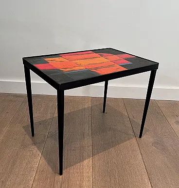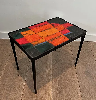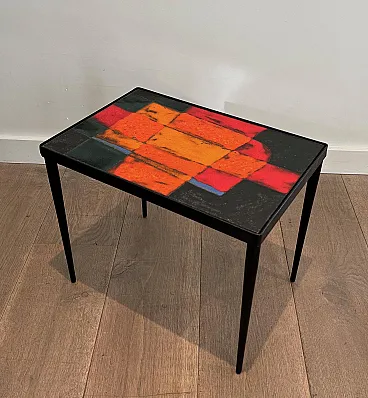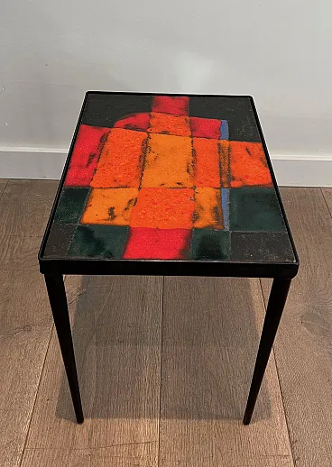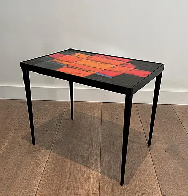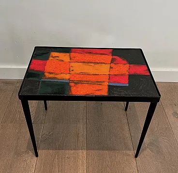 Tavolino in metallo laccato e ceramica, anni '50