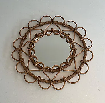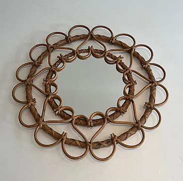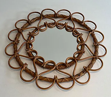 Piccolo specchio in rattan, anni '70
