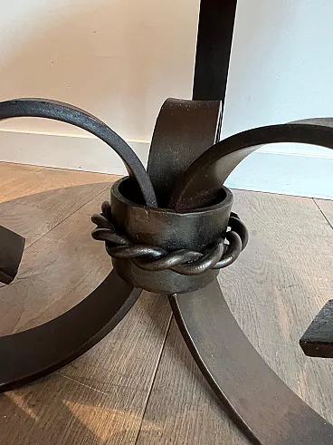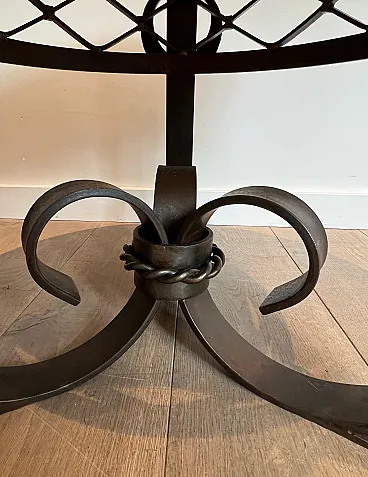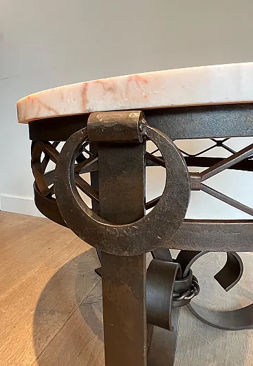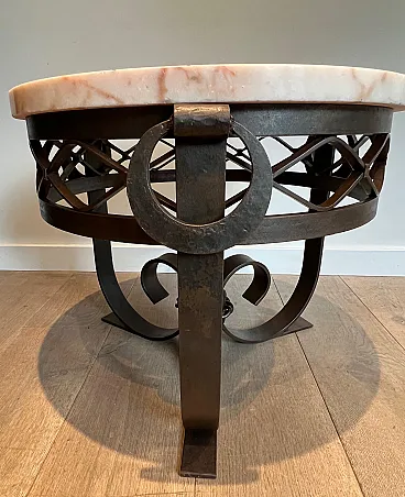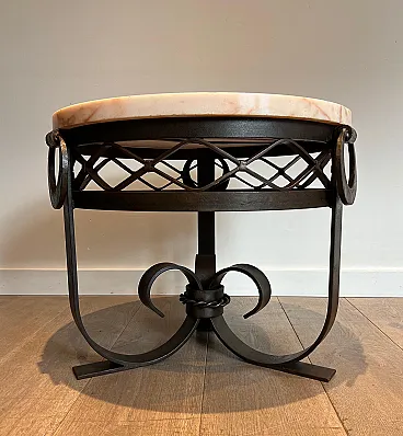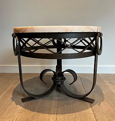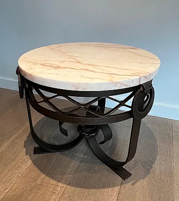 Gueridon Art Deco in ferro battuto e piano in marmo, anni '40