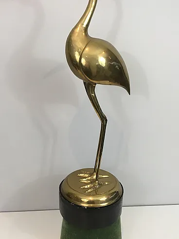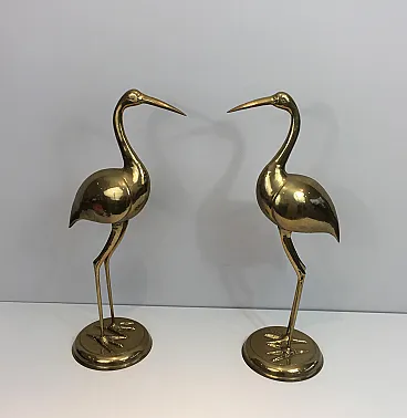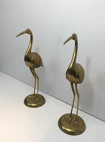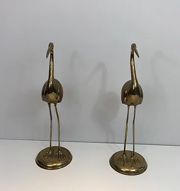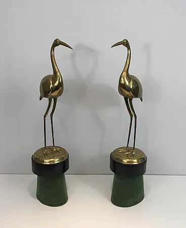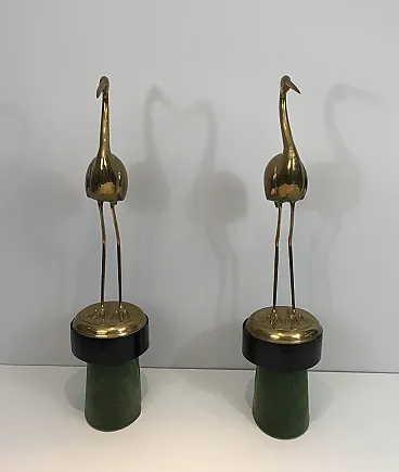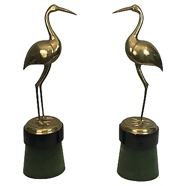 Coppia di Ibis decorativi in ottone su supporti in legno, anni '70
