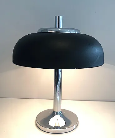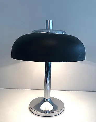 Lampada da tavolo dal design cromato e laccato nero, anni '50