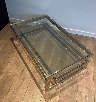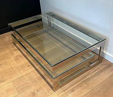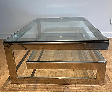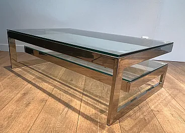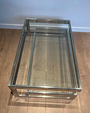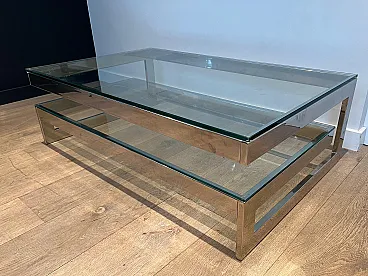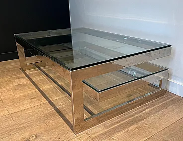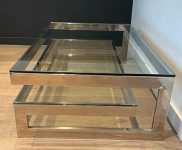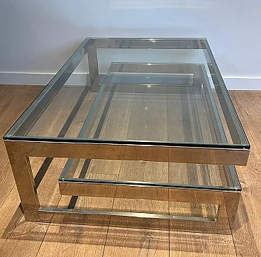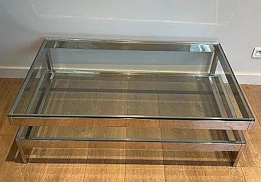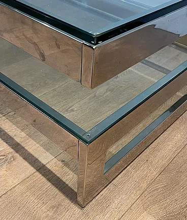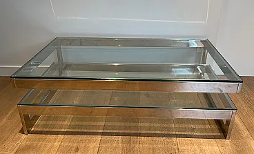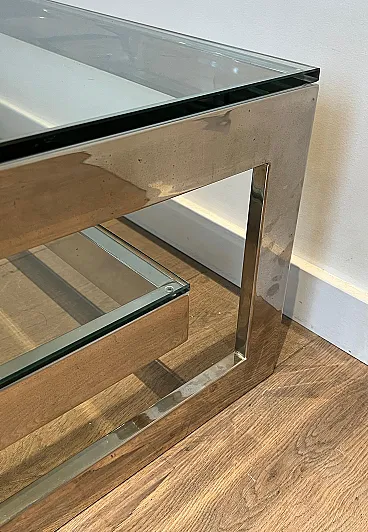 Tavolino cromato con 2 ripiani in vetro, anni '70