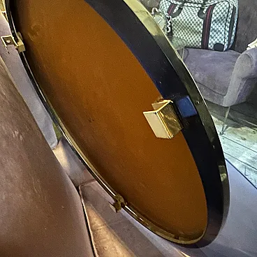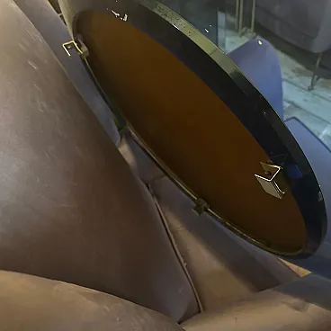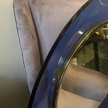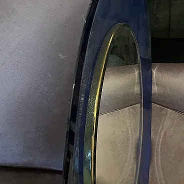 Lo Specchio da parete rotondo in vetro blu e ottone del 1960, mod. 1669, disegnato da Max Ingrand per Fontana Arte, è un esempio iconico del design italiano di metà secolo. Max Ingrand, celebre artista e designer del vetro, era noto per il suo uso innovativo del vetro e per le sue creazioni eleganti e senza tempo. Questo specchio da parete è di forma circolare e presenta linee pulite e geometriche caratteristiche dell'estetica del Mid-Century Modern. Le dimensioni sono equilibrate e creano un punto focale audace ma armonioso. Lo specchio incorpora una cornice in vetro colorato di blu, un segno distintivo dello stile di Ingrand. La cornice in ottone dello specchio funge da elemento strutturale e decorativo, aggiungendo calore e raffinatezza. Prodotto da Fontana Arte, rinomata per il suo approccio artigianale al vetro e all'illuminazione, lo specchio mostra un'eccezionale maestria. Questo specchio non è solo funzionale ma anche un oggetto decorativo che aggiunge raffinatezza e carattere a qualsiasi spazio. Ideale per l'uso in soggiorni, ingressi o camere da letto, è una quintessenza per i collezionisti di mobili e arte moderna della metà del secolo. Questo pezzo rimane molto ricercato dai collezionisti e dagli appassionati di design per il suo significato storico, l'impeccabile lavorazione artigianale e il design senza tempo.