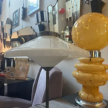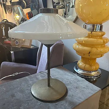Lampada da tavolo in ottone e vetro in stile Oscar Torlasco, anni '50