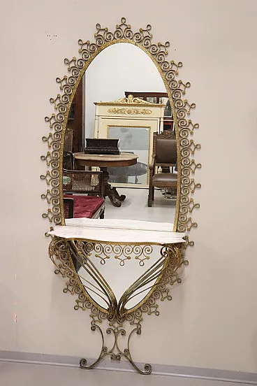 Grande specchiera ovale con consolle, Pier Luigi Colli, anni '50