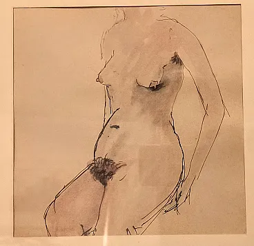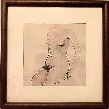 NUDO femminile , acquerello a soggetto erotico. Anni 50 Italia