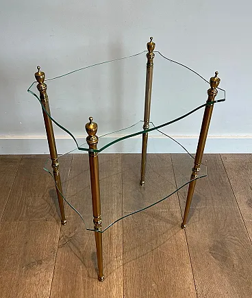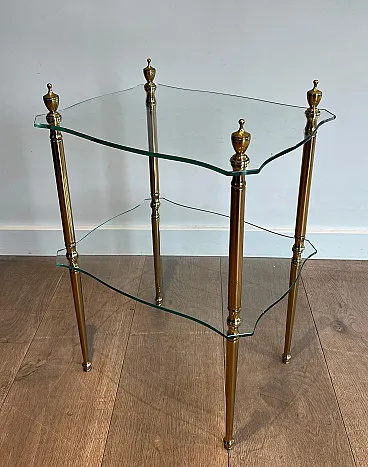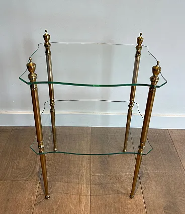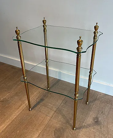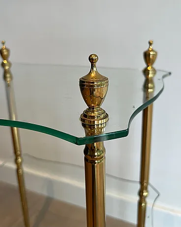 Tavolino in ottone con ripiani in vetro della Maison Jansen, anni '40