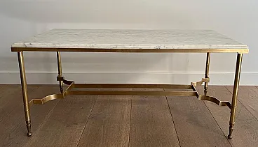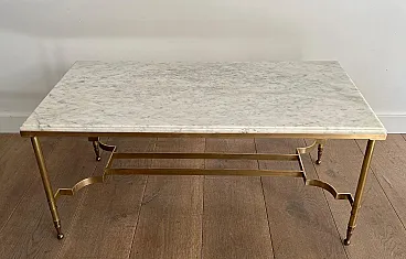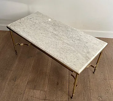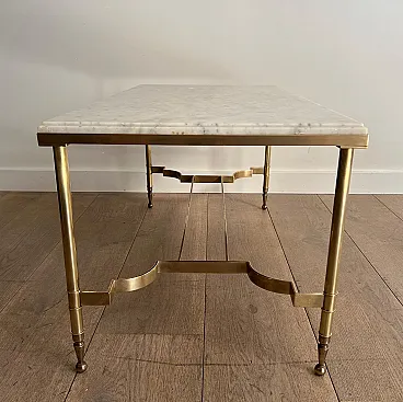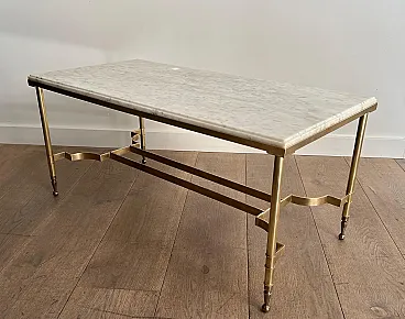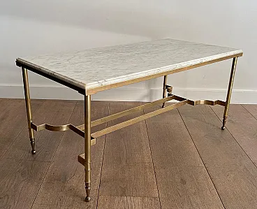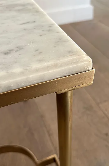 Tavolino in ottone con piano in marmo di Maison Jansen, anni '40