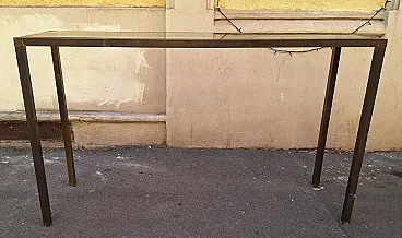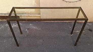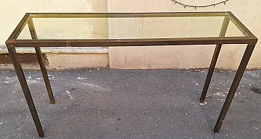 Consolle in ottone a sezione quadrata con ripiano in vetro, anni '50