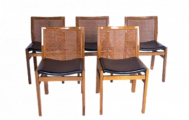 5 Sedie in noce, pelle e paglia di Vienna di Molteni & Co., anni '70