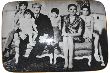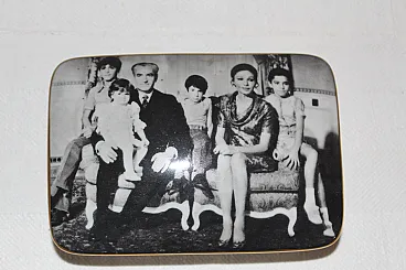 Scatola in ceramica con foto dello Scià di Persia e famiglia-anni '70