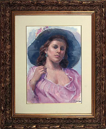Ritratto di donna con cappello di Salvatore Ciaurro, anni '80