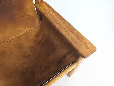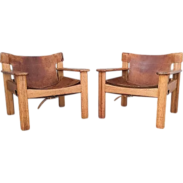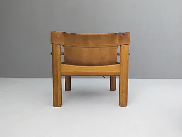 Coppia di poltrone Natura disegnate da Karin Mobring per IKEA nel 1976. Realizzate con una miscela di materiali naturali e di minimalismo scandinavo, queste poltrone presentano un'estetica sorprendente ma sobria. Questa coppia di poltrone presenta spessi sedili in pelle cognac patinata, sostenuti da una struttura in pino massiccio, che incarna l'equilibrio tra forma e funzione tipico di Mobring. Ben utilizzate ma piene di carattere, rimangono comode e strutturalmente solide. Introdotte nel 1977, le poltrone Natura riflettono la dedizione di Mobring alle linee pulite, alle forme organiche e alla perfetta integrazione di elementi naturali. Il loro design senza tempo e il loro comfort pratico ne fanno un esempio di eredità scandinava.
