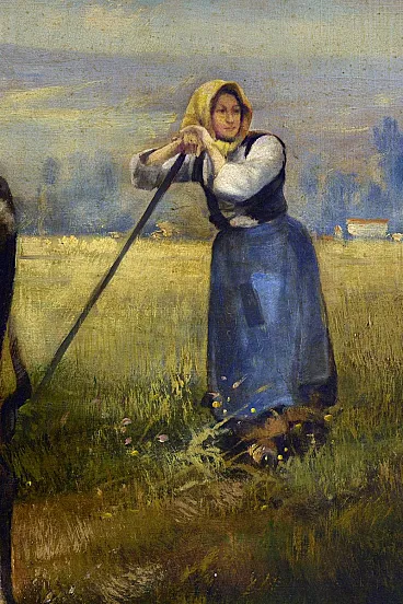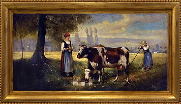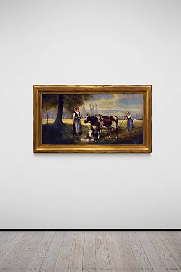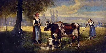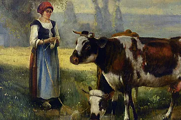 Scena pastorale con mucche di Emilio Pergola, olio su tela, anni '90