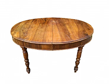 Tavolo ovale interamente in massello di noce con un meccanismo che le consente di allungare più del doppio, particolare forma del piede denota epoca e provenienza che in questo caso si tratta della prima metà dell'800.Piemonte, Ottimo stato. Certificato di Autenticità.