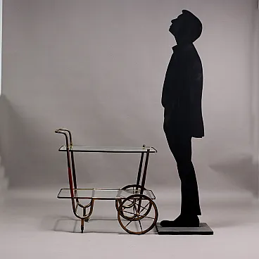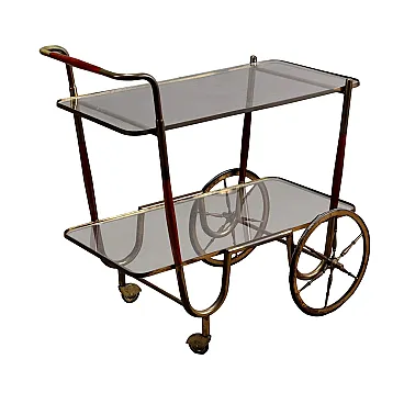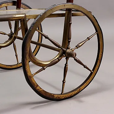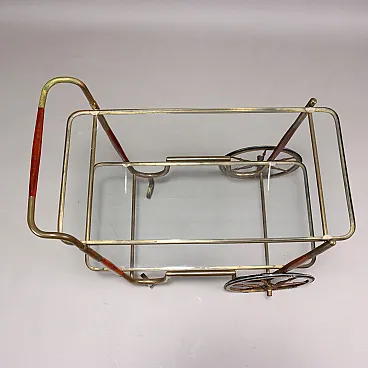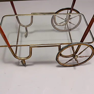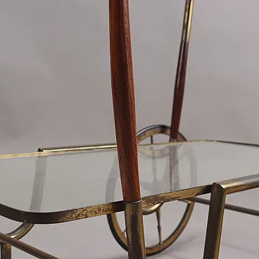 Carrello di servizio in legno, ottone e vetro, anni '50