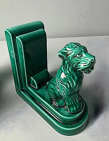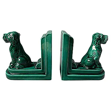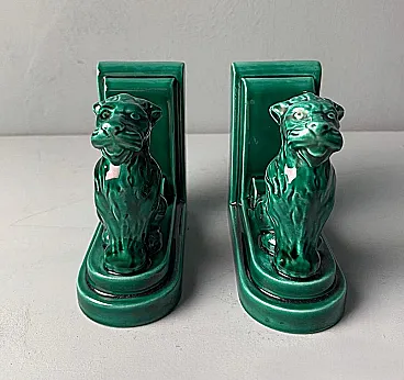 Coppia di reggilibri in ceramica di Saint Clément, metà '900