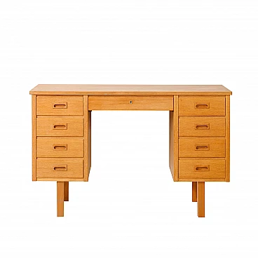 Scrivania scandinava in teak con nove cassetti, anni '60