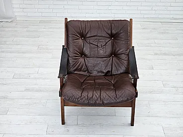 Sedia norvegese di Torbjørn Afdal, "Hunter" in pelle, anni '70
