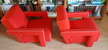 Coppia di poltrone Utrecht di Cassina in lana rossa, 2000