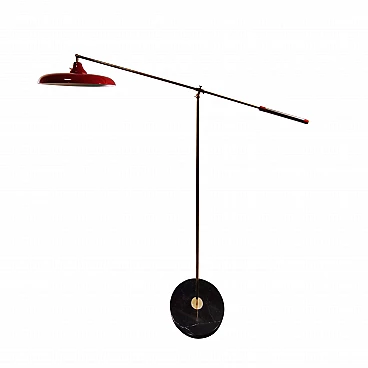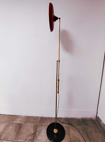 Lampada da terra in ottone e base in marmo, regolabile con contrappeso