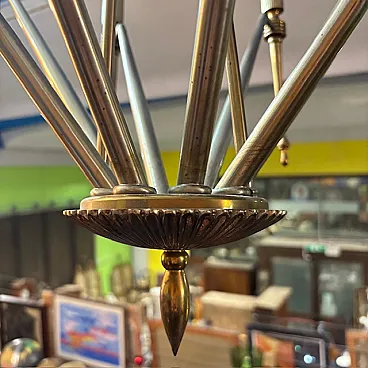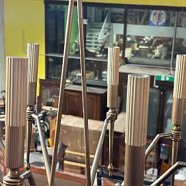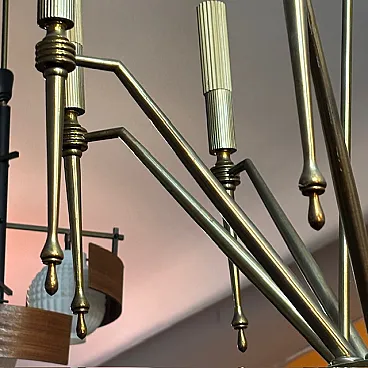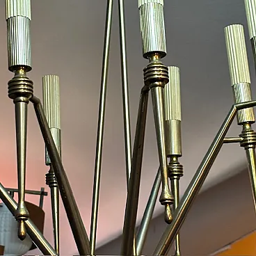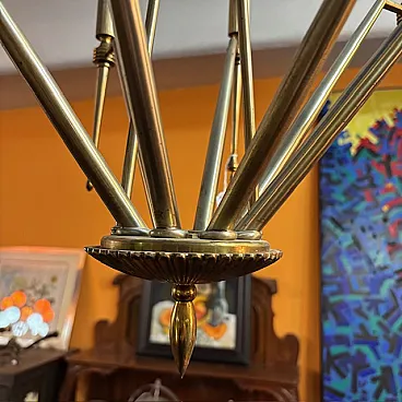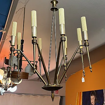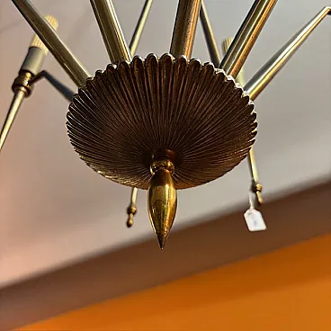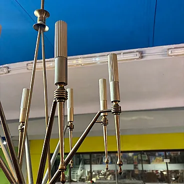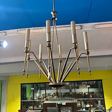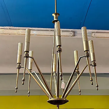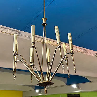 Lampadario a 8 luci in ottone dorato, anni '50