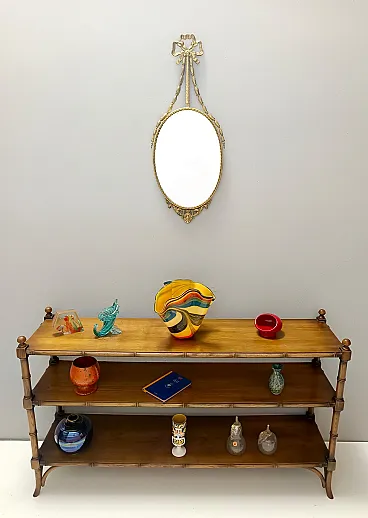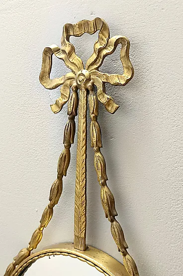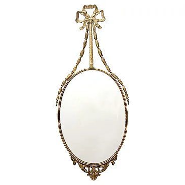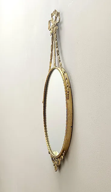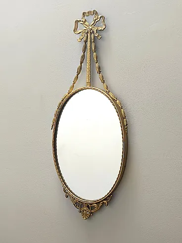Specchio da parete ovale con cornice in ottone e nastro, anni '60