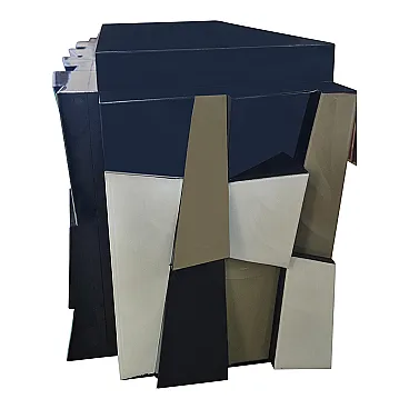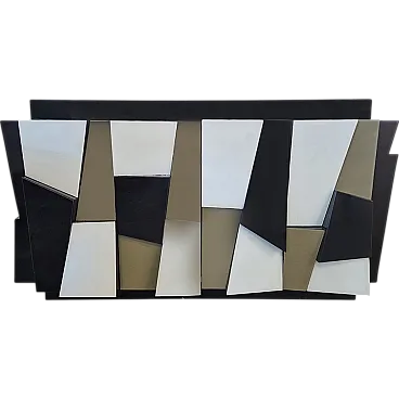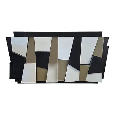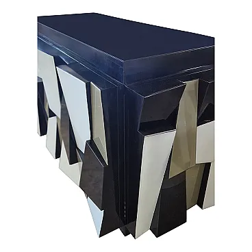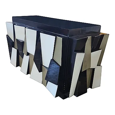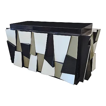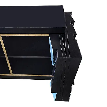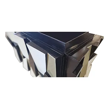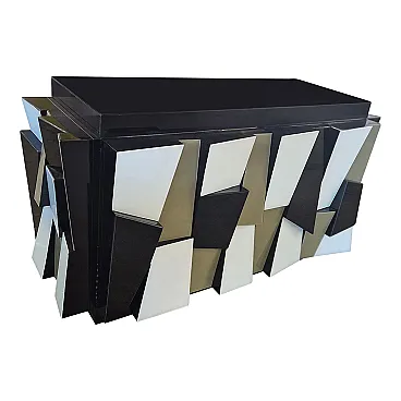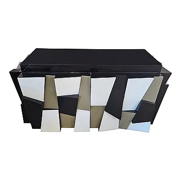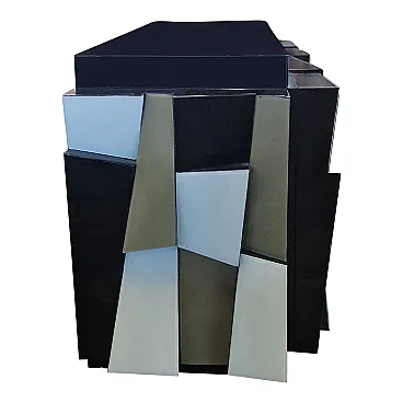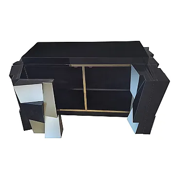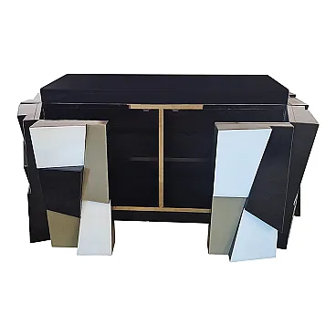 Credenza a due ante in legno laccato nero e ante in vetro, anni '90
