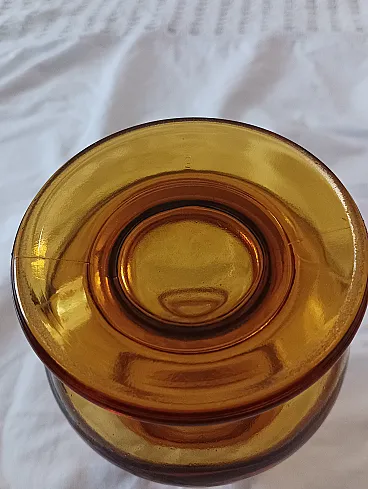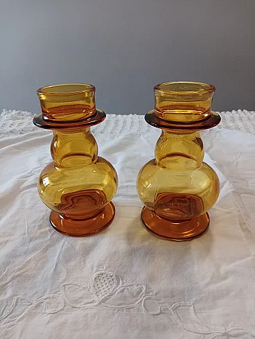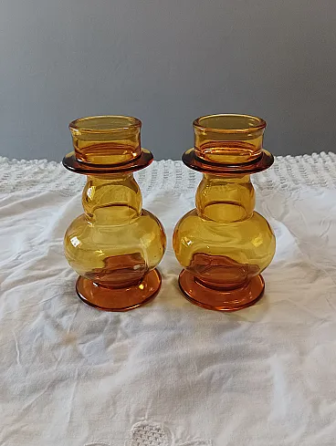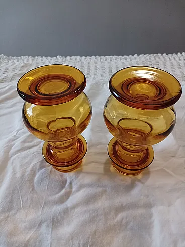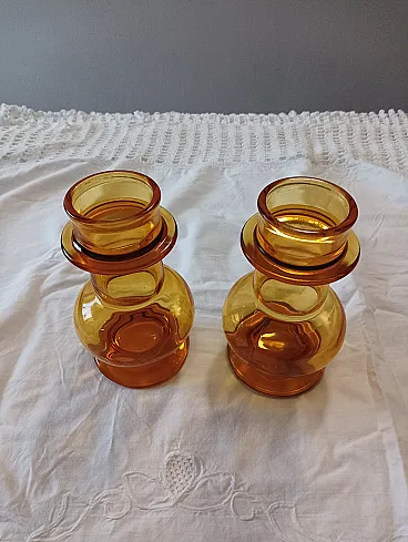 Coppia di vasi porta candela in vetro ambrato, anni '50