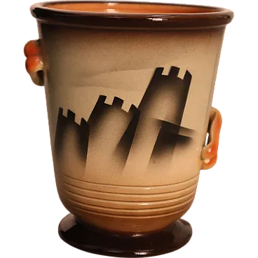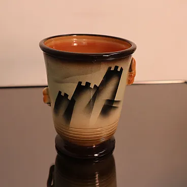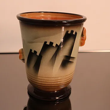 Italian Futurist Art Deco Ceramic Vase, Hand-Painted by FACI, 1930s