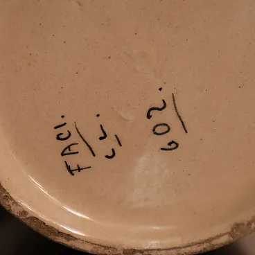 This rare Futurist Art Deco ceramic vase was handcrafted by FACI (Fabbrica Artistica Ceramiche Italiane), a renowned Italian ceramic manufacturer founded by Adolfo Brunelli in 1926. The piece showcases the bold and dynamic aesthetic typical of Futurist design, which sought to capture movement, energy, and modernity.
