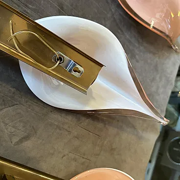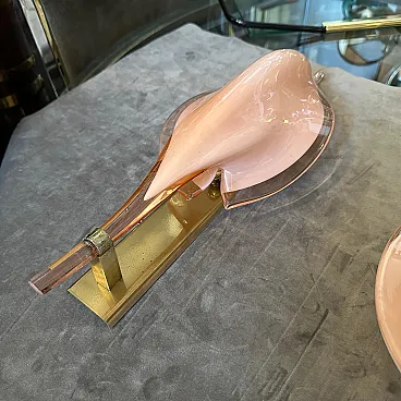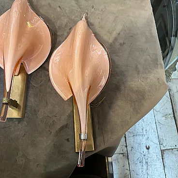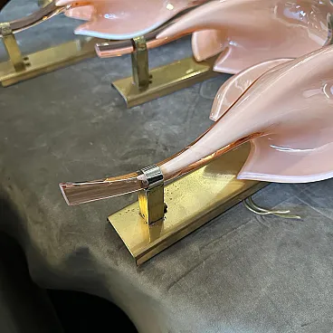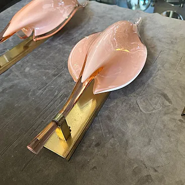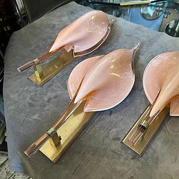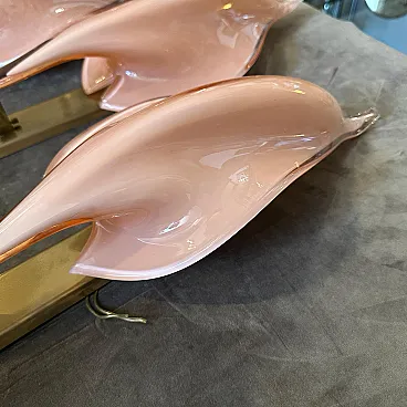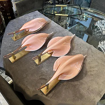 4 Applique a foglia in vetro di Murano rosa di Franco Luce, anni '70