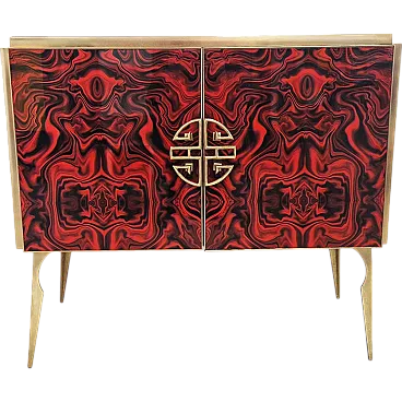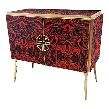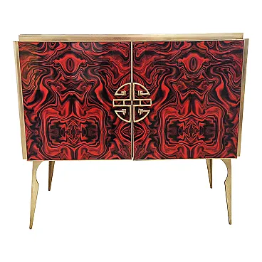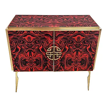 Credenza due ante in vetro colorato rosso, anni '90