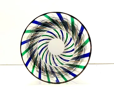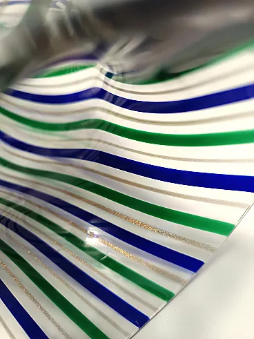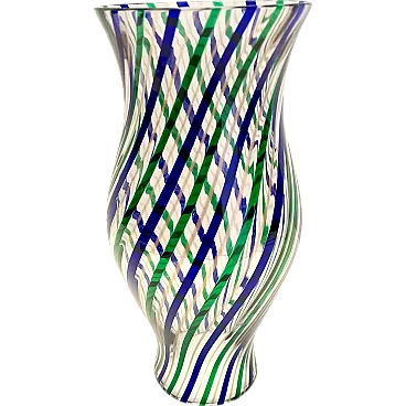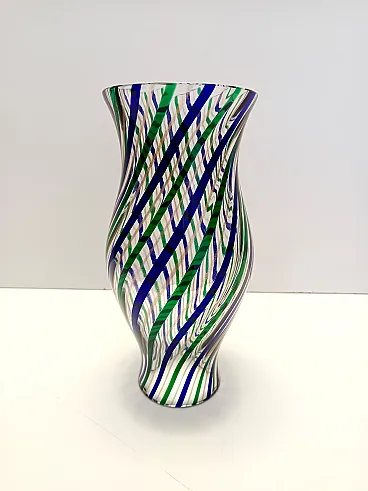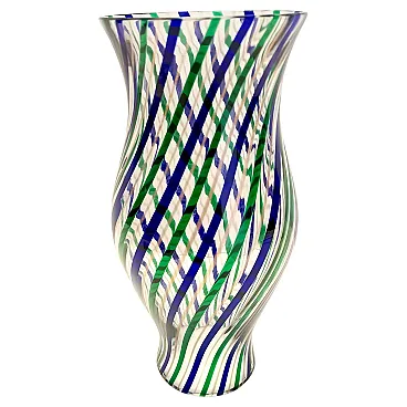 Vaso in vetro di Murano verde, blu, bronzo di Irene Paolo, anni '90
