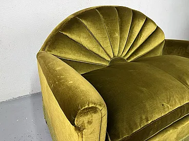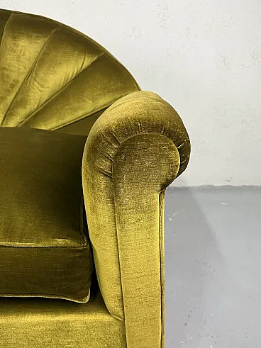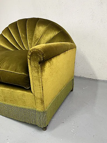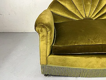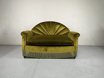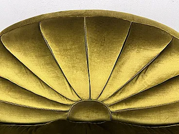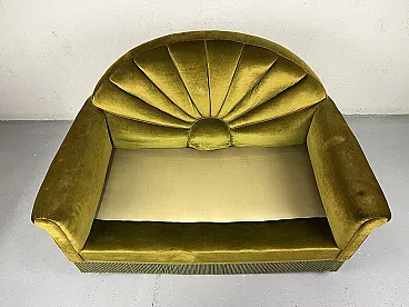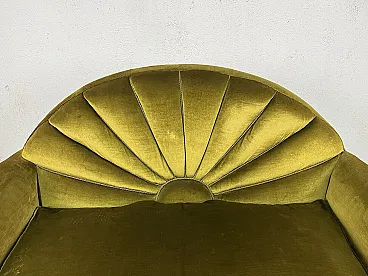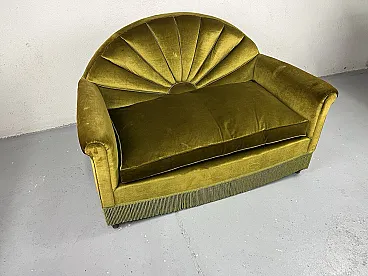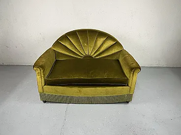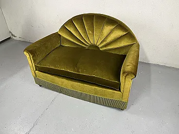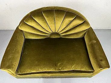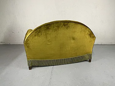 Divano due posti velluto verde con schienale a mezza luna, anni '60