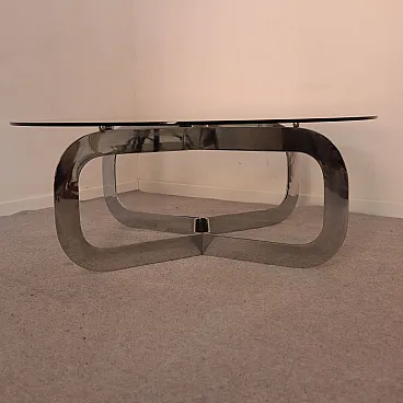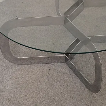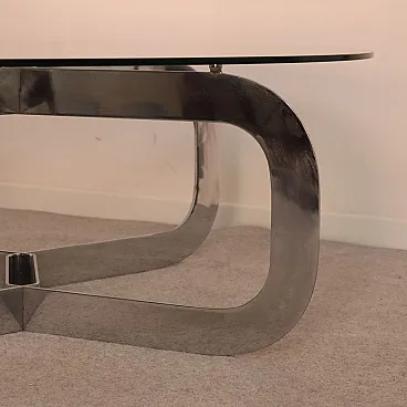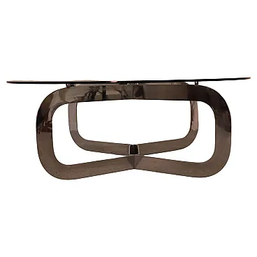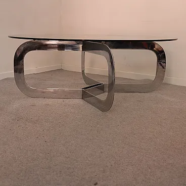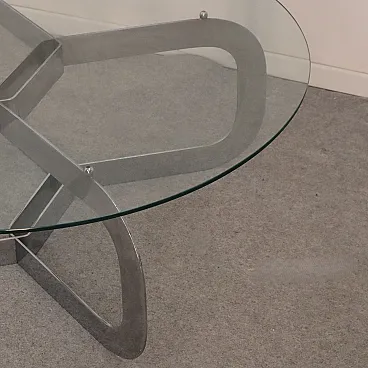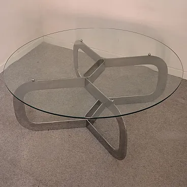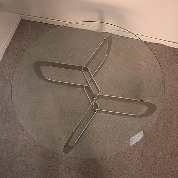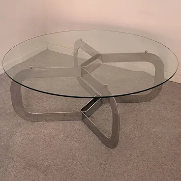 Tavolino da caffè rotondo italiano in acciaio e vetro, anni '70