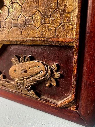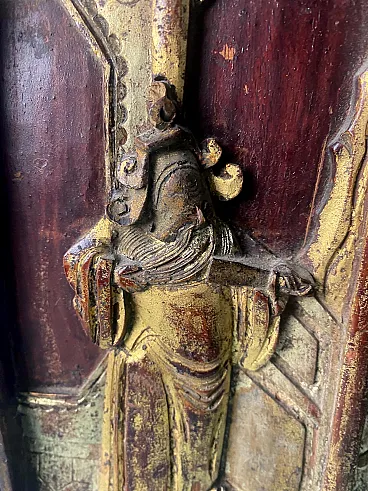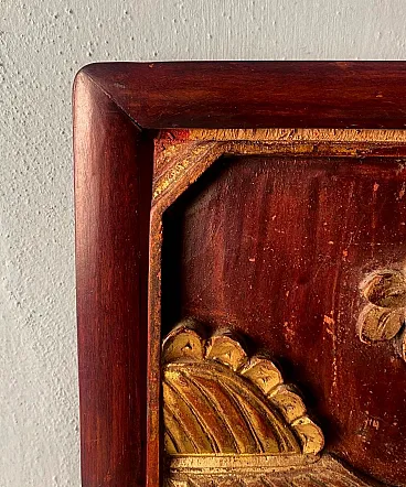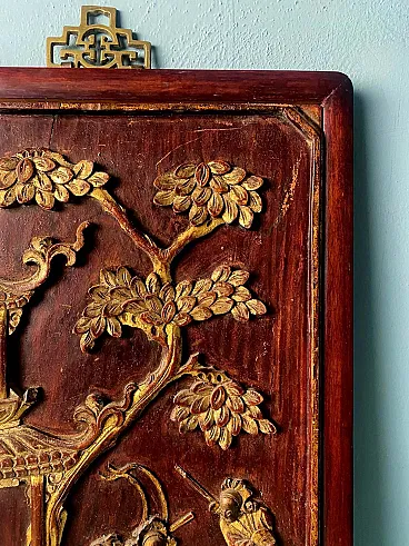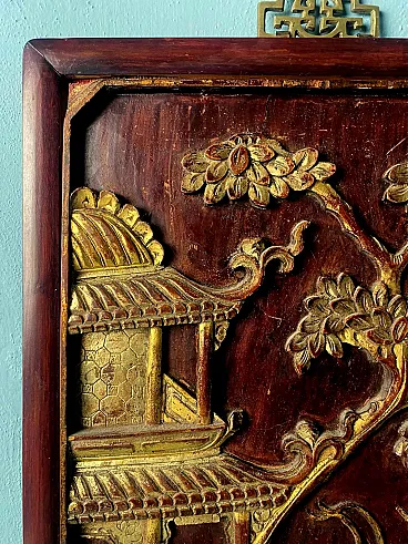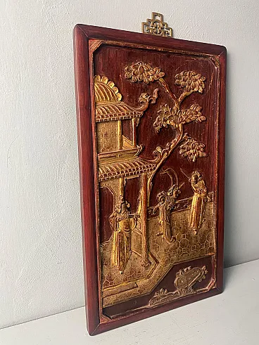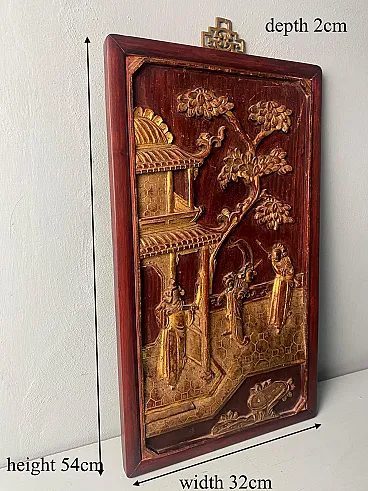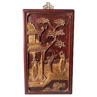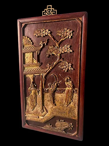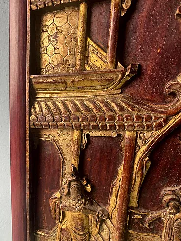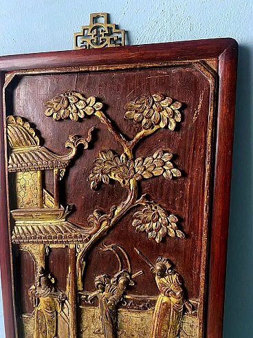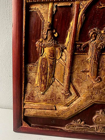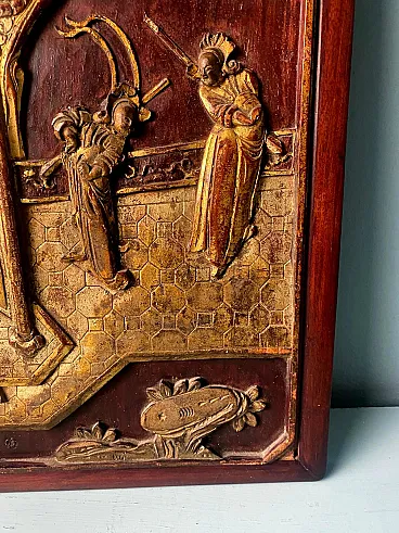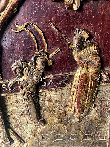 Pannello in legno della dinastia Qing con figure in rilievo, fine '800