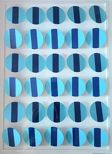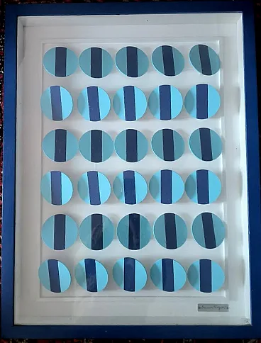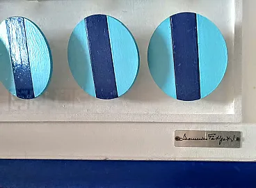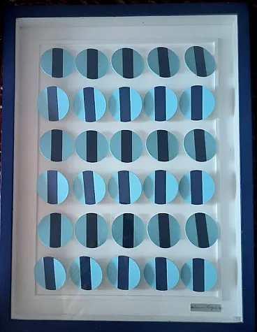 Opera di Domenico Fatigati di " RIGORISMO & SIMBOLISMO GEOMETRICO" 84 x 64 Domenico Mimmo Fatigati L'artista Domenico Mimmo Fatigati è associato alla corrente artistica dei RIGORISTI, in quanto eccelle nell'Astrazione Geometrica. Le opere di Fatigati, evidenziano il suo notevole rigore costruttivo e la ricerca cromatica distintiva e interagiscono con il design e l'architettura razionalista, raggiungendo un'estetica di minimalismo compositivo, creando effetti tridimensionali sorprendenti grazie alle sue accuratissime elaborazioni su tavole e tele. L'artista è anche un architetto che attira l'attenzione di architetti e designer sofisticati. Le sue opere si ispirano all'equilibrio, alla misura e al ritmo compositivo, mostrando una profonda connessione tra ordine psicologico e struttura formale. Fatigati crea un'arte che evoca meraviglia e si apre al trascendente attraverso l'uso sapiente della tecnica e dell'emozione. Il suo stile è caratterizzato dalla linea e dal colore, e molte delle sue opere sono esposte in gallerie prestigiose. Nato nel 1949 ad Acerra, Italia, Fatigati ha studiato arte e architettura e ha iniziato la sua carriera artistica nel 1969. Ha esposto in numerose mostre in Italia e all'estero e ha ricevuto riconoscimenti critici significativi. Il suo lavoro è incentrato su strutture geometriche, equilibrio cromatico e giochi di luce. È stato membro di vari gruppi artistici e ha contribuito alla fondazione di movimenti come il Linearismo Cromatico. Le sue opere sono caratterizzate da moduli geometrici e interconnessioni cromatiche che creano una dinamica visiva intrigante. L'uso di materiali come legno, metallo e laminato plastico gli consente di esplorare una varietà di forme aniconiche. Le sue opere spesso richiamano l'architettura moderna razionale e le strutture compositive. Le opere di Domenico Mimmo Fatigati sono state apprezzate da critici come Giorgio Agnisola, e la sua arte è stata presentata su diverse testate giornalistiche importanti. Le prossime mostre di Fatigati sono previste a Ferrara, Castelmassa, Napoli, Gaeta e Terni.