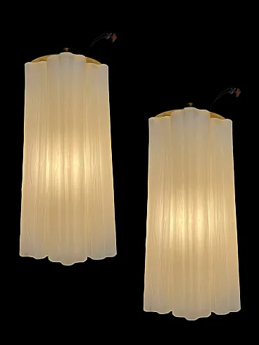 Item Name - Milky White Murano Glass Tronchi Sconces, 1970s, Set of 2