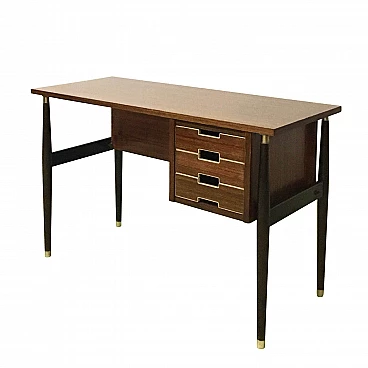 Piccola scrivania della storica azienda mantovana Schirolli, in ottime condizioni, realizzata in teak e mogano con dettagli in ottone.