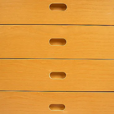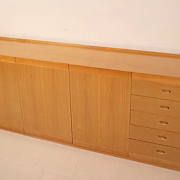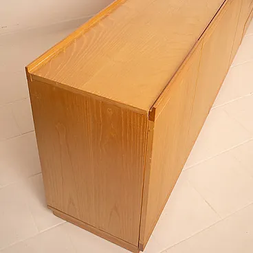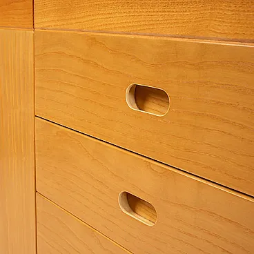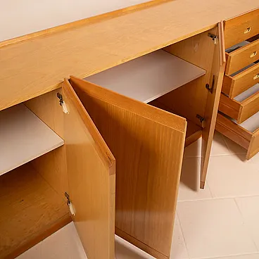 Si tratta di un mobile realizzato in legno chiaro, in massello e piuma di frassino, con una struttura lineare e pulita che riflette lo stile moderno e funzionale tipico del design italiano della metà del XX secolo.