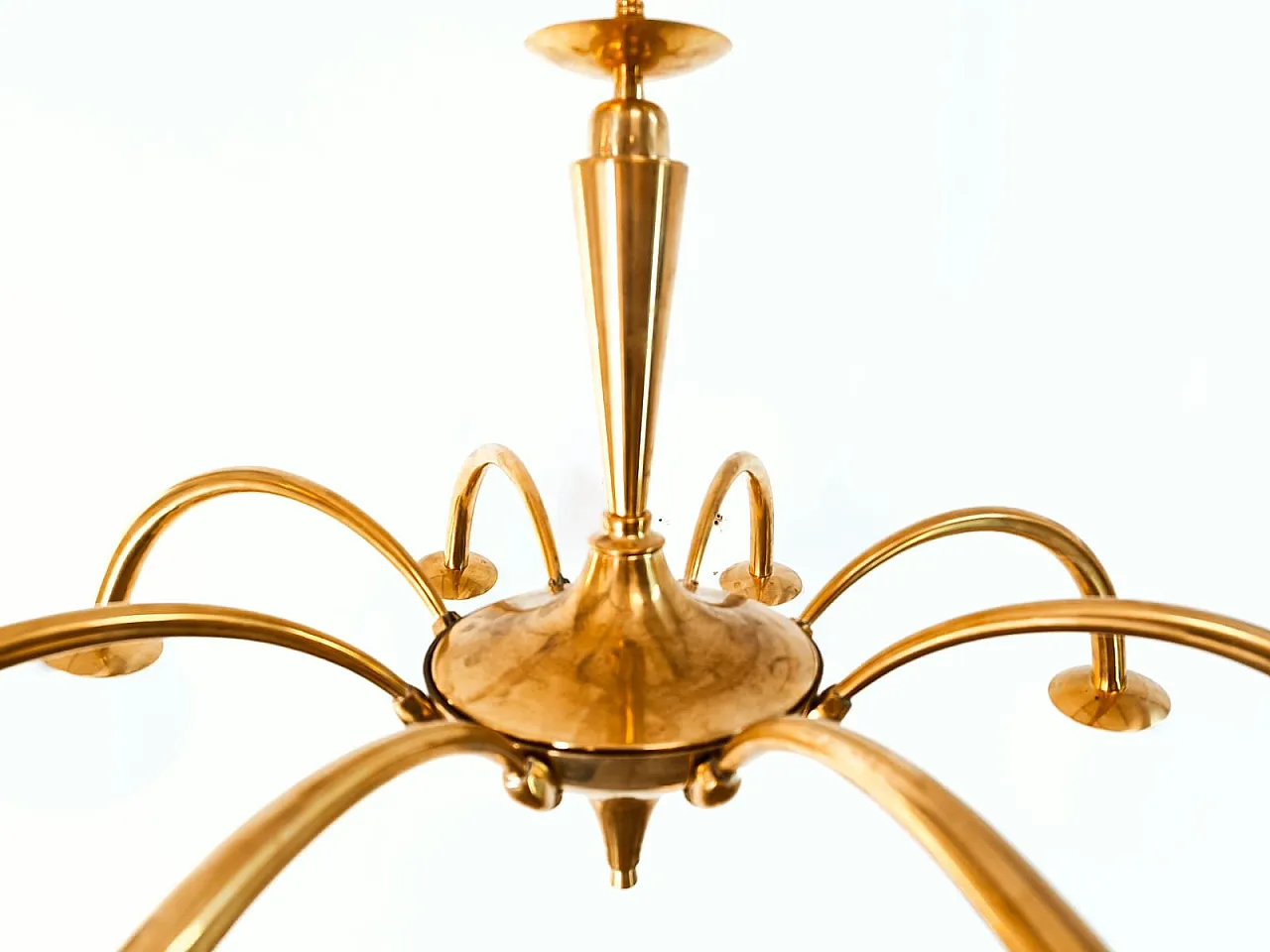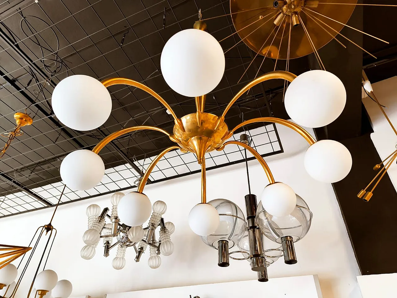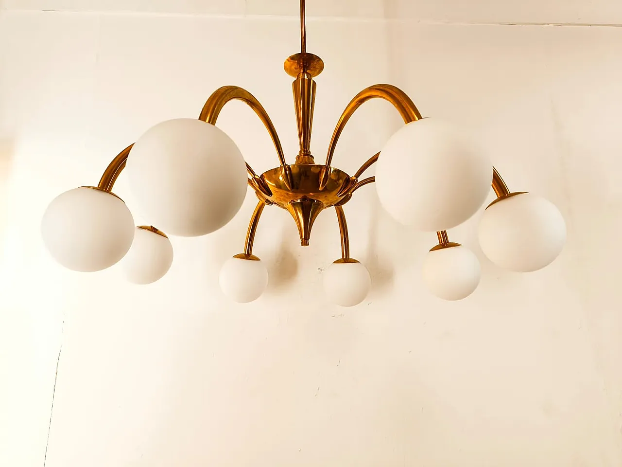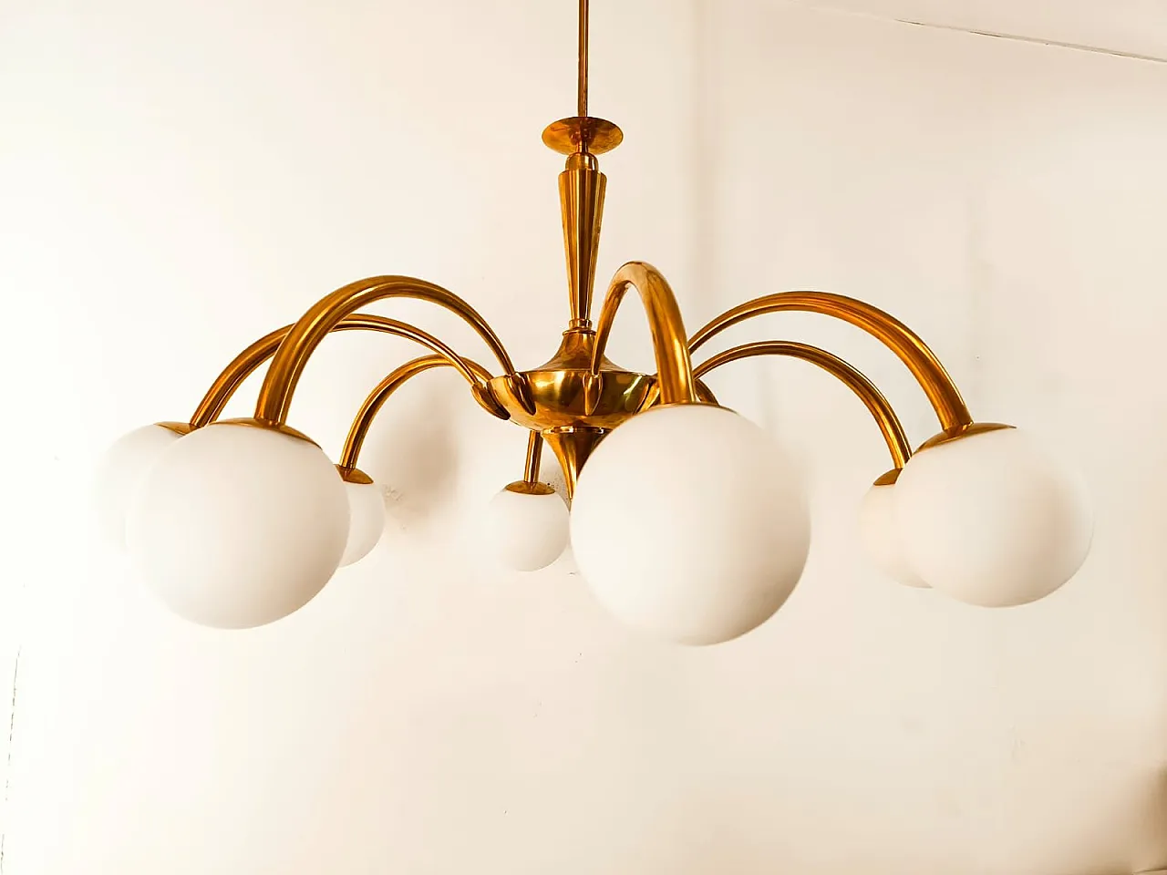 Lampadario a 8 luci in ottone con sfere in vetro, anni '60