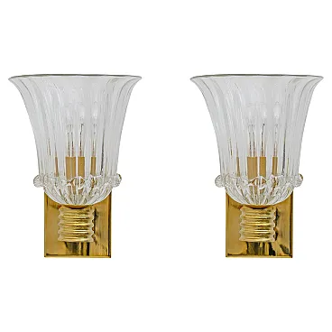 Coppia di lampade in ottone e vetro di Murano, anni '90