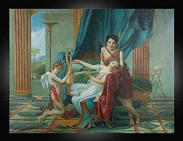Descrizione: Dipinto antico olio su tela raffigurante Saffo e Faone.